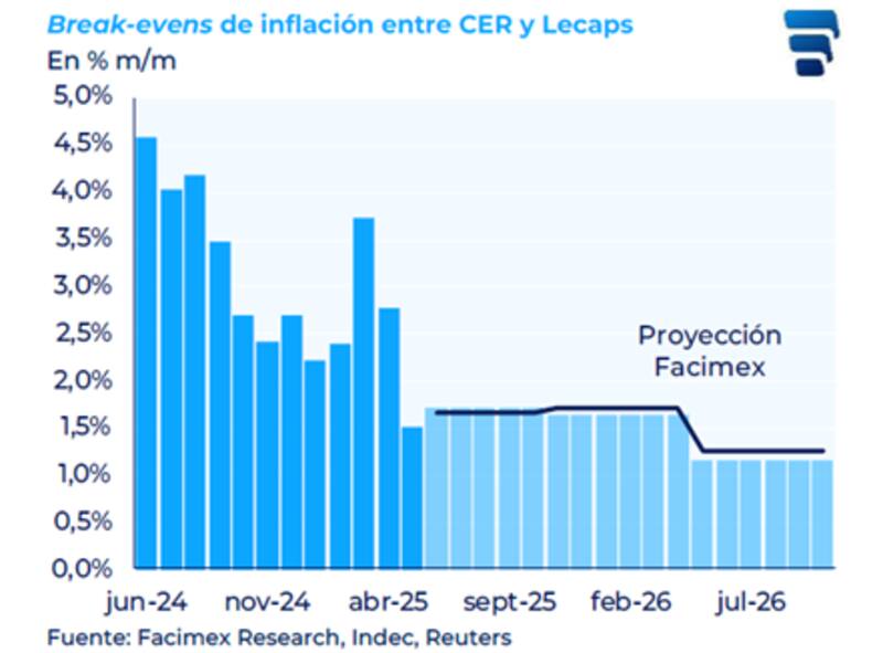 Los break even de inflación se ubican en niveles de 1,6% promedio hasta fin de año, para luego marcar una baja del 1% desde marzo de 2026 en adelante.