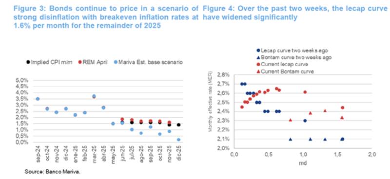"Las tasas de inflación de equilibrio implican actualmente una inflación mensual de alrededor del 1,6 % para lo que resta de 2025. Sin embargo, esto supera nuestro escenario base, que proyecta una inflación del 20,8 % para 2025, en comparación con el 25,5 % implícito en el mercado. En general, consideramos que los Bontam (bonos duales) son los instrumentos más atractivos en el segmento en pesos. Consideramos que TTM26 y TTJ26 son las oportunidades más atractivas", indicaron.