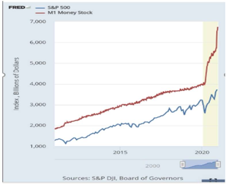 Toda la liquidez inyectada en los mercados por parte de los bancos centrales hizo que se inflen los precios de las acciones y de los activos a nivel global. El dólar perdió valor contra el resto de los activos, es decir, contra las acciones, contra las materias primas, incluso contra el bitcoin.