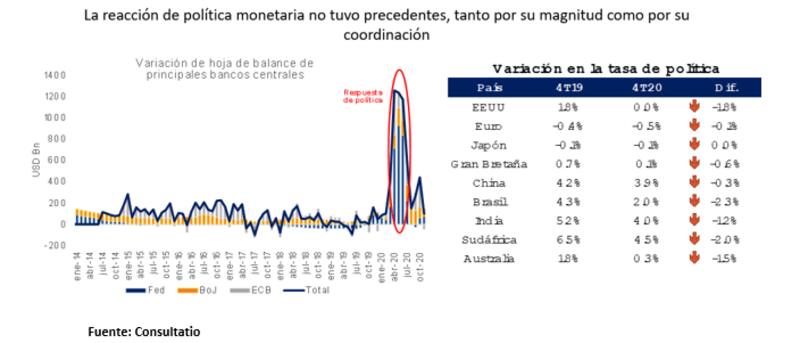 José Echague, estratega de Consultatio explicó que en un 2020 para el olvido, con la pandemia como motor de la mayor crisis global desde la Gran Depresión, sobraban motivos para ser pesimistas. Sin embargo, los gobiernos de todo el mundo mostraron haber aprendido de las lecciones de 2009 y, esta vez, acompañaron los estímulos monetarios con un impulso fiscal sin precedentes.