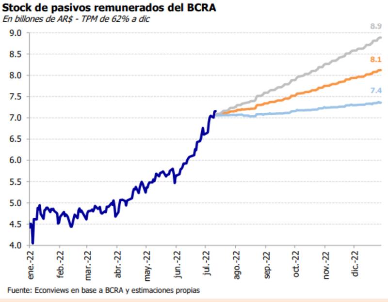 Los analistas de Econviews esperan que para fin de año el stock de Leliq y pases supere los $ 8 billones en el escenario base y que se acerque a $ 9 billones en un escenario más complejo.