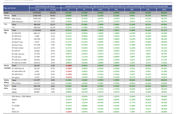 Según datos elaborados por los analistas de la consultora 1816, los fondos comunes de inversión (FCI) money market rindieron 3,1% en promedio. Esto fue por encima de la suba del dólar pero por debajo de la inflación.