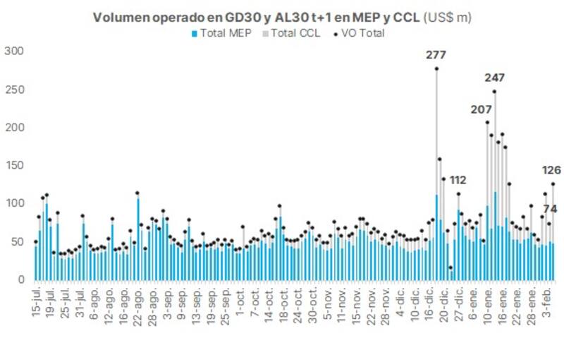 PPI coincide en que la intervención es muy inferior a la del arranque del año. En los últimos días, observa vaivenes, en base al volumen operado en AL30 y GD30. El lunes, en medio de la tensión global, el monto negociado trepó a u$s 113 millones, desde los u$s 83 millones del viernes, y el martes cedió a u$s 74 millones, aunque este miércoles repuntó a u$s 126 millones.