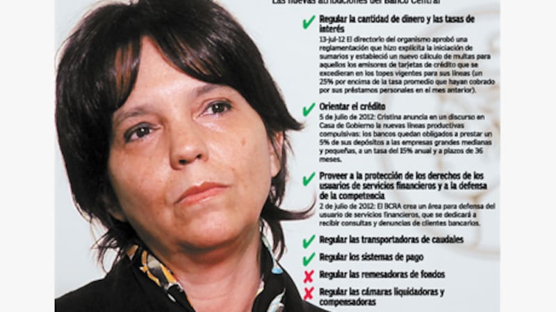 La decisión política está tomada: terminar de aplicar cada una de las nuevas atribuciones que recibió el Banco Central tras la reforma a la Carta Orgánica, aunque eso despierte el malestar de un sistema financiero completo. Mercedes Marcó del Pont ya cumplió este año con la mitad de ellas: la orientación del crédito, la regulación de las tasas de interés y la creación de un área de defensa para los usuarios de los servicios bancarios. Pero sólo esta semana dejó en claro que tiene previsto, al menos, avanzar sobre otras tres en los próximos meses: la extensión de las líneas compulsivas a pymes, tal como anticipó el martes la Presidenta; la regulación de la actividad del transporte de caudales, para evitar sobreprecios y casos de lavado de dinero en el sector; y el freno al giro de dividendos que hacen los bancos hacia sus matrices del exterior, todo el año próximo, en el esfuerzo por contener la salida de divisas.