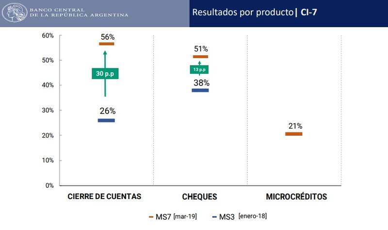 Ayer el BCRA difundió los resultados generales del séptimo relevamiento de Cliente Incógnito (CI), el cual corresponde a la repetición del tercer CI realizado entre enero y febrero de 2018 en los productos "cierre de cuentas a distancia" y “depósito electrónico de cheques , y al que se le agregó el producto “microcrédito . La repetición le permite comparar como avanzó el nivel de adopción de un producto o servicio.