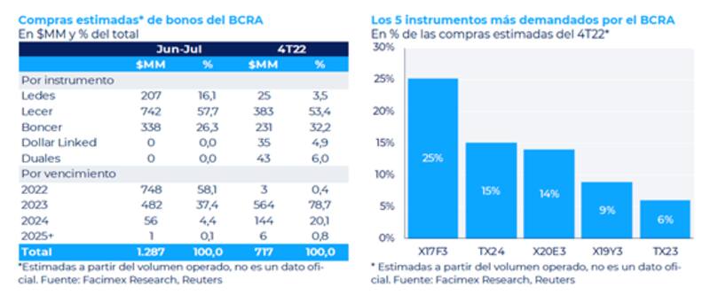 También es una cifra equivalente al 17% de la base monetaria de septiembre, concentrando la compra en Letras ajustadas por CER y bonos CER.