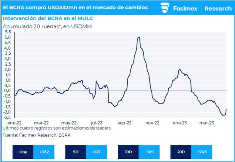El BCRA cortó la racha de ventas de dólares y lleva 3 días seguidos de compras. Sin embargo, sigue habiendo preocupación en el Gobierno por la mala performance del Central en la acumulación de divisas. En lo que va de 2023, perdió u$s 3000 millones.
