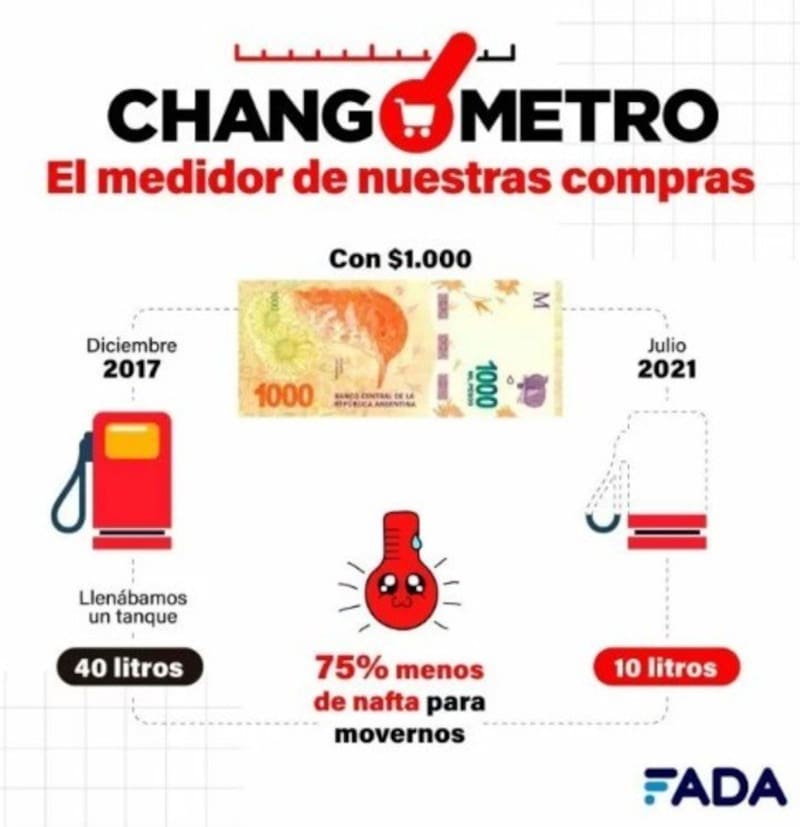 La Fundación Agropecuaria para el Desarrollo de Argentina (FADA) presentó en agosto el Changómetro, el medidor de poder de compra que permitió ver cómo el billete de $ 1000 perdió valor desde su lanzamiento en 2017.
