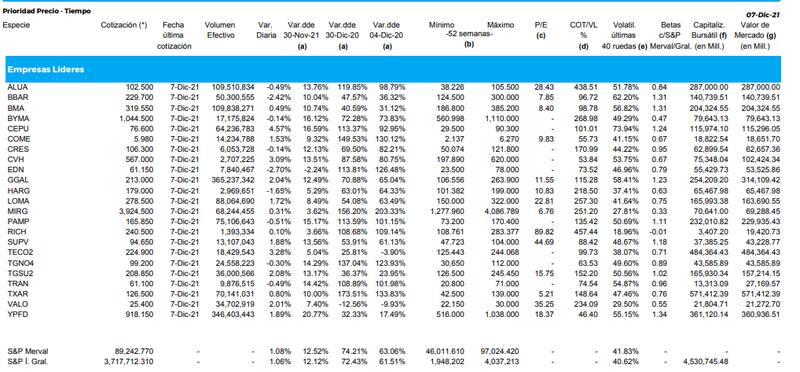 No obstante, también hubo lugar para algunas caídas. Edenor cerró con un retroceso de 2,7%, mientras que Banco Francés cayó 2,42% y Holcim cedió 1,65 por ciento.