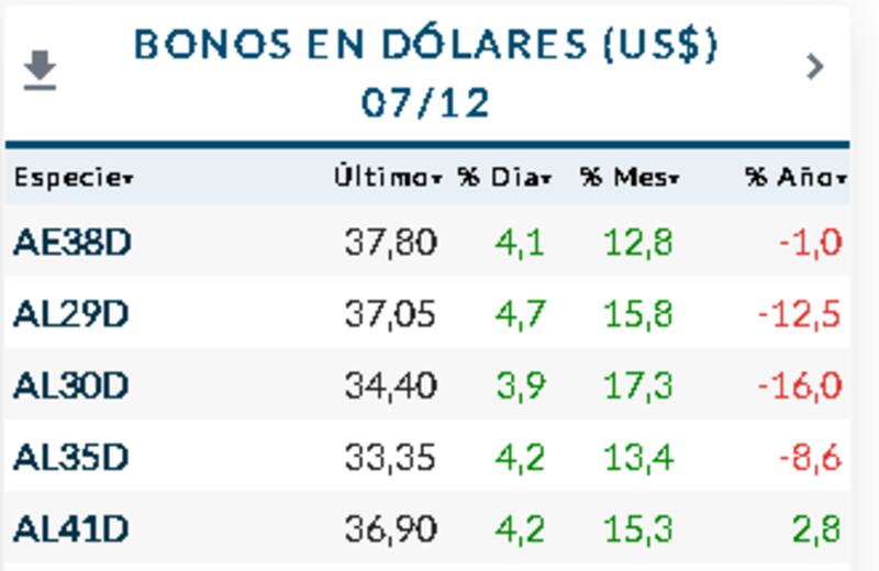 La mejor predisposición del Gobierno a cerrar un acuerdo con el Fondo Monetario Internacional (FMI) parece tener efecto en los activos argentinos, ya que los bonos vienen mostrando una fuerte recuperación en lo que va de diciembre. Algo similar, aunque en menor magnitud, ocurre con las acciones y los ADR.