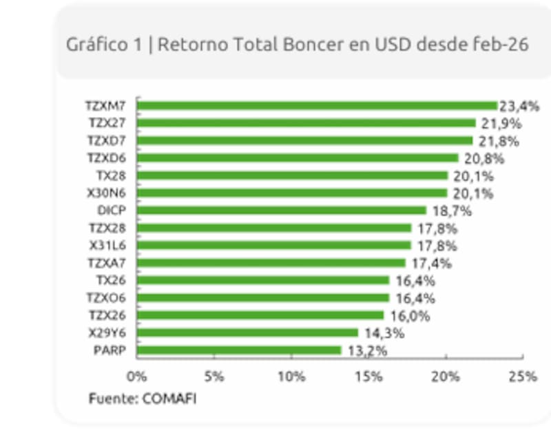 Desde el banco Comafi señalaron: “Los Boncer ofrecieron un retorno promedio del 18% en dólares desde que abrimos nuestra posición de carry en febrero. La rápida compresión en las tasas reales y la apreciación cambiaria reciente nos inclinan a tomar ganancias y buscar alternativas dolarizadas”.