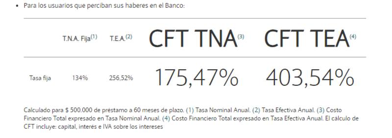 La tasa de interés puede variar dependiendo si ya sos o no cliente de la entidad bancaria. Si pedís el préstamo y sos percibís tus haberes en el Banco, el cálculo queda de la siguiente forma: