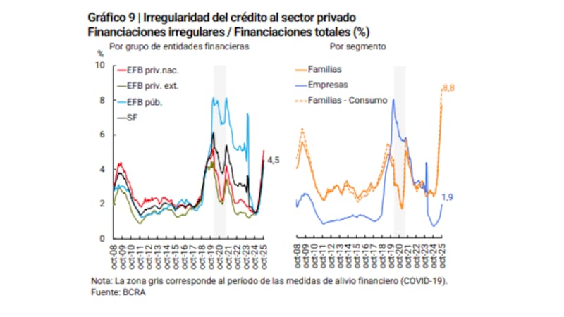 Desde el punto de vista del riesgo, el BCRA reconoce que los indicadores de mora comenzaron a mostrar un leve aumento durante el segundo semestre del año, en línea con la expansión del crédito.