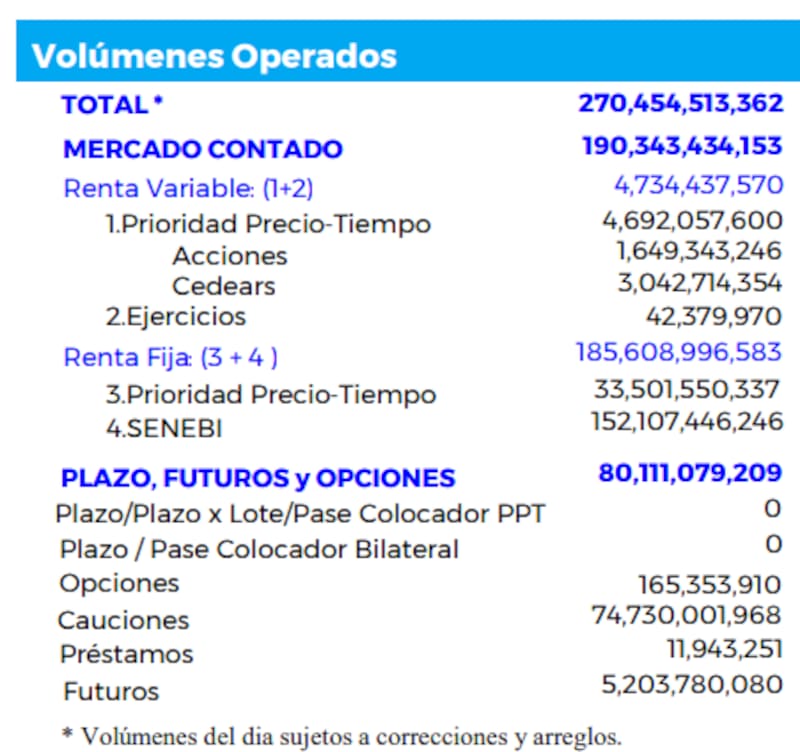 En términos de volumen, las acciones locales movieron $ 1649 millones y los Cedear, $ 3042 millones.