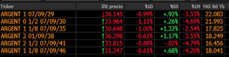 Los títulos que peor la están pasando son los ley local, ya que el Banco Central (BCRA) se corrió del mercado cambiario bursátil, lo que hizo caer rotundamente la compra del bonar 2030 en su especie dolarizada.