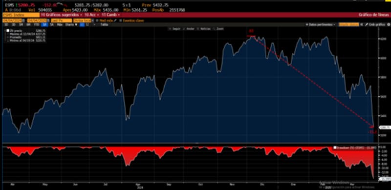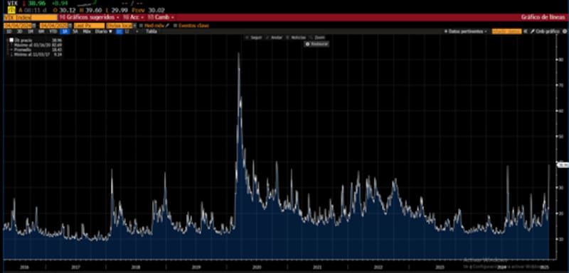 La volatilidad medida por el VIX en 30 pts marcó máximos desde agosto de 2024, dejando atrás la zona de turbulencia y entrando en la de pánico.
