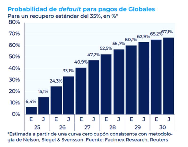 Las probabilidades implícitas de default para enero colapsaron al 6,4%, saltando al 15% para junio de 2025 (acumulado).