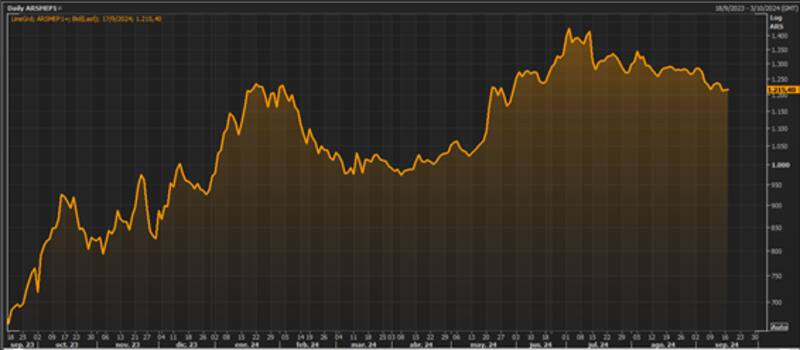 Dicha estabilidad cambiaria se da en un momento en el que el Tesoro debe rollear deuda, habiendo enfrentado vencimientos por $ 14,1 billones en septiembre, de los cuales ya rolleó la mitad a comienzo de mes.