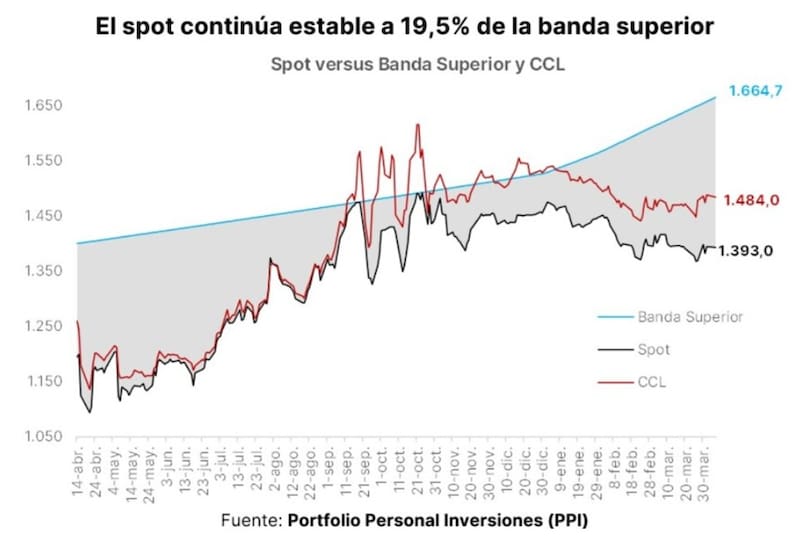 El mercado ve cierto piso en la apreciación cambiaria a la vez que las tasas de interés en pesos son bastante ajustadas, mientras que el tipo de cambio se ubica un 20% debajo del techo de la banda.
