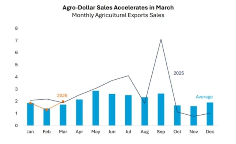 De ese total, unos u$s 31.700 millones corresponden solamente a soja y maíz, cuyos precios subieron en promedio 4,3% y 5,0% en marzo frente a febrero.
