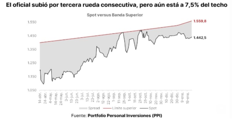 Desde Sailing Inversiones detallaron que, de cara al dato de inflación de enero y con un tipo de cambio que se mantiene operando cerca del 7% del techo de la banda, el contexto sigue siendo favorable para estrategias de carry en pesos.