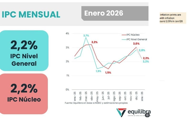 En particular, la consultora Equilibra proyecta una inflación mensual de 2,2% para enero, debajo del 2,8% de diciembre y de 2,2% para la inflación núcleo, debajo del 3% de diciembre.