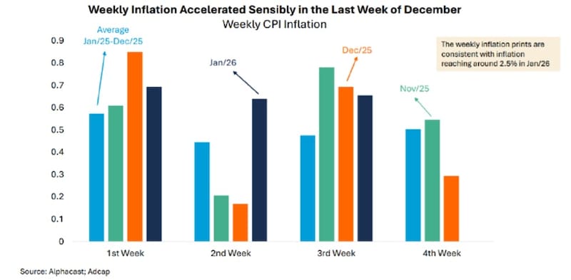 Para Adcap Grupo Financiero, las mediciones semanales de inflación son consistentes con una inflación cercana de 2,4% en enero, debajo del 2,8% de diciembre.