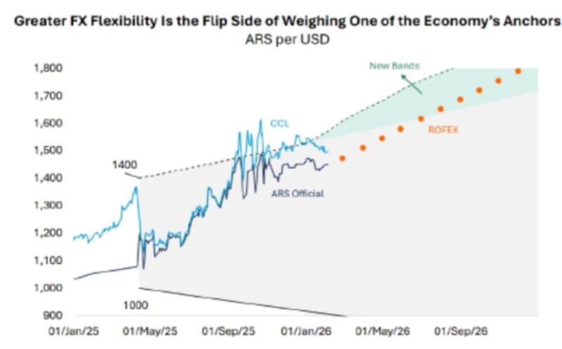 Alejandro Fagan, estratega en Balanz, consideró que la credibilidad del esquema de bandas continuará aumentando a medida que el BCRA compre más reservas, conteniendo los riesgos cambiarios y favoreciendo una mayor compresión en el riesgo país.