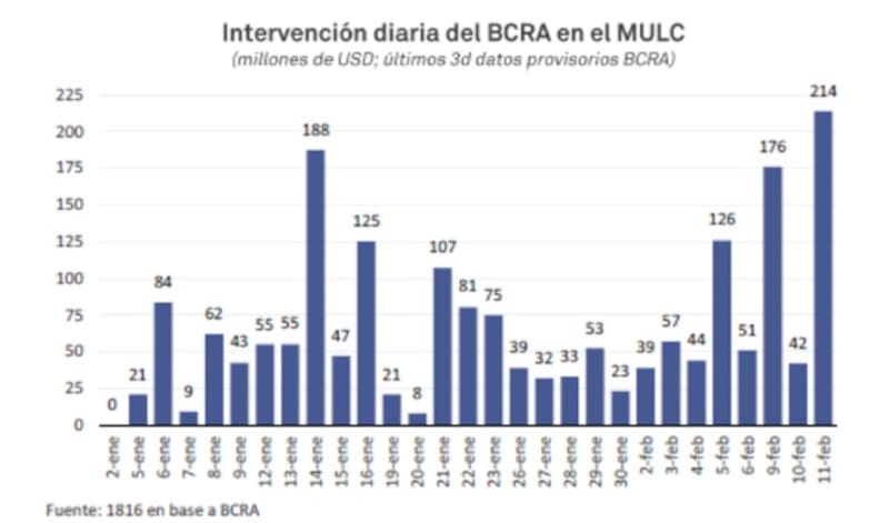 Según cálculos de TSA Bursátil, para las Lecap de mitad y fin de febrero, los dólar break even se ubican en $ 1468 y $ 1486, y con una proyección del techo de la banda en $ 1585 y $ 1607.