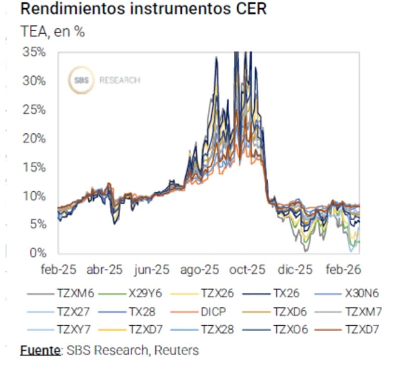 “Vemos valor en particular en el TZX26 (CER +6,3%) y el TZXD6 (CER +8,1%), que descuentan una inflación promedio del 2% m/m entre febrero y abril y del 1,7% m/m entre mayo y octubre de 2026”, dijeron desde Cohen.