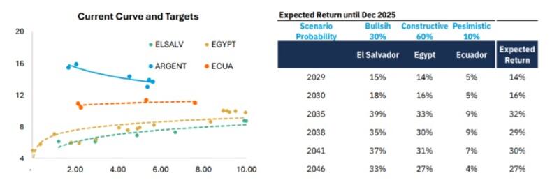 En ese contexto, los spreads de la deuda argentina se ajustan al nivel de Egipto, en torno al 8,5% hacia fin de año, aprovechando el "respaldo" de EEUU, similar al apoyo que reciben los países del Golfo.