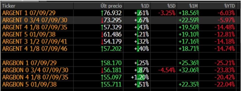 En este marco, los soberanos finalizaron con subas promedio de 2,1%, destacándose los Globales con un avance de 2,4%, mientras que los Bonares aumentaron 1,6%.