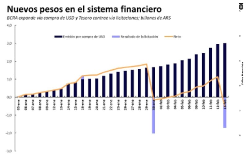 El BCRA emite pesos para comprar dólares que luego fueron retirados por el tesoro en las licitaciones.