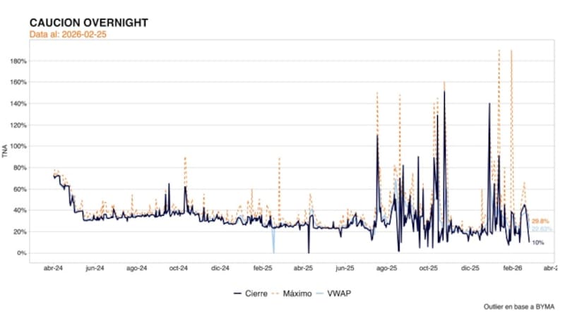 Sin embargo, y ya con la confirmación de que no se ofrecerían LECAPs, el mercado ajustó de forma marcada esas expectativas, llevando la implícita a 25,6%.