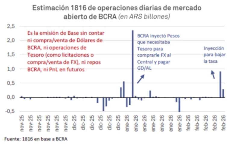 Por un lado, el Central llevó a cabo operaciones de mercado abierto por un total de $ 1,2 billones entre jueves y viernes, mientras que la secretaria de Finanzas dejó de ofrecer títulos a tasa fija y rolleando debajo del 100% en la licitación de esta semana.