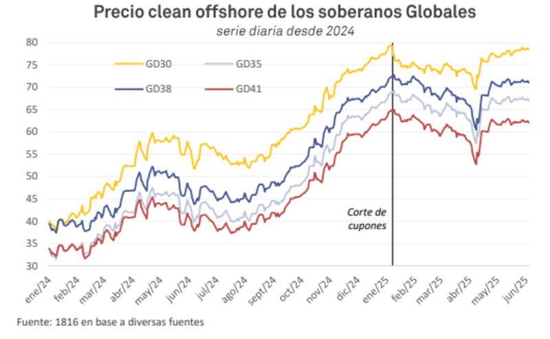 "Creemos que habrá una reinversión de los cupones por parte de inversores que reciban pago y amortizaciones el 9 de julio. Principalmente en la parte media y larga de la curva con foco en AL35, AL41 y GD46", detalló.