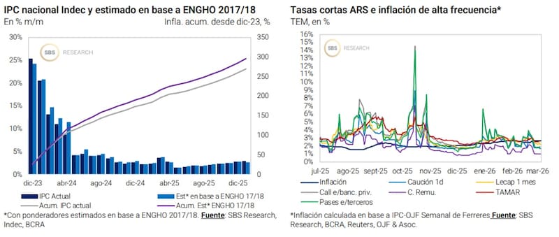 “El mejor desempeño relativo de los instrumentos indexados impulsó un leve aumento en las implícitas de inflación para 2026, que volvieron a posicionarse por encima de la zona del 27%. Este movimiento se da en un contexto de tensiones en Medio Oriente, un factor que el mercado monitorea por su potencial impacto sobre el precio del petróleo y, en consecuencia, sobre las expectativas inflacionarias globales”, explicó.