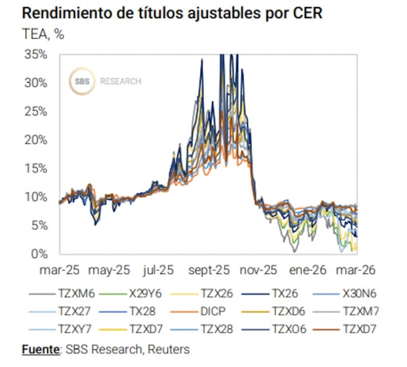 “Dado que la inflación ha mostrado cierta resistencia a la baja por factores estacionales de corto plazo y la influencia de los bienes regulados, venimos recomendando armar posiciones en la curva CER por sobre instrumentos a tasa fija, con una cartera balanceada en activos con vencimientos entre 2026 y 2027”, dijeron.