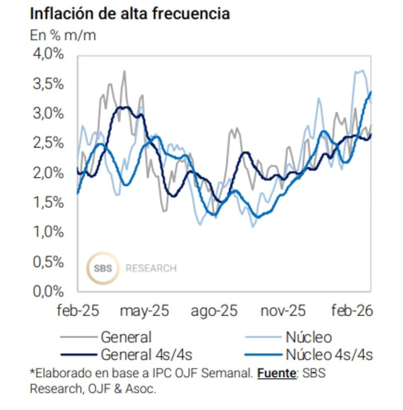 “La mayoría de estos shocks son factores puntuales, mientras que el superávit fiscal continúa actuando como el principal ancla. Sin embargo, cierta inercia podría persistir en marzo y abril, y si las tensiones en Medio Oriente continúan, también podrían ejercer presión alcista sobre los precios de la energía”, dijeron desde Max Capital.