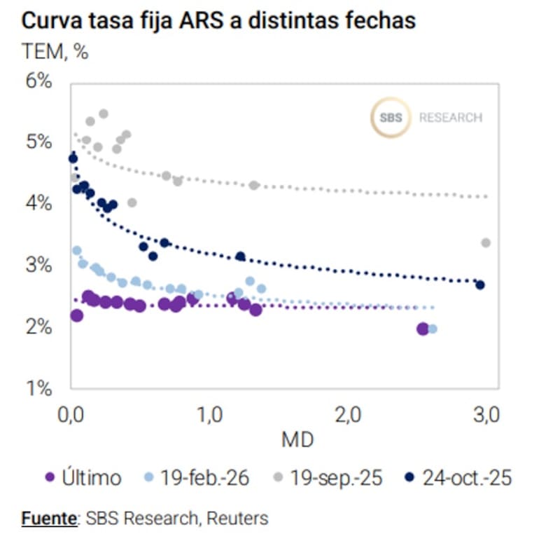 Aun así, toda la curva se mantiene en niveles de 2,5% (TEM) o debajo de ello, lo cual hace que las tasas se muestren bastante ajustadas.