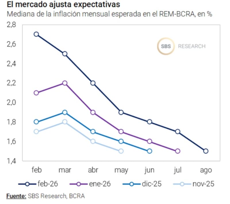 Los analistas de Max Capital agregaron que la inflación en los últimos meses estuvo impulsada principalmente por los efectos del relajamiento monetario posterior a las elecciones de medio término, los aumentos en los precios de la carne vacuna, parcialmente impulsados por la reciente autorización de exportaciones a Estados Unidos, que incentivó a los productores a retener el ganado por más tiempo para aumentar el peso y redujo temporalmente la oferta doméstica, y algunos ajustes en las tarifas de servicios públicos.