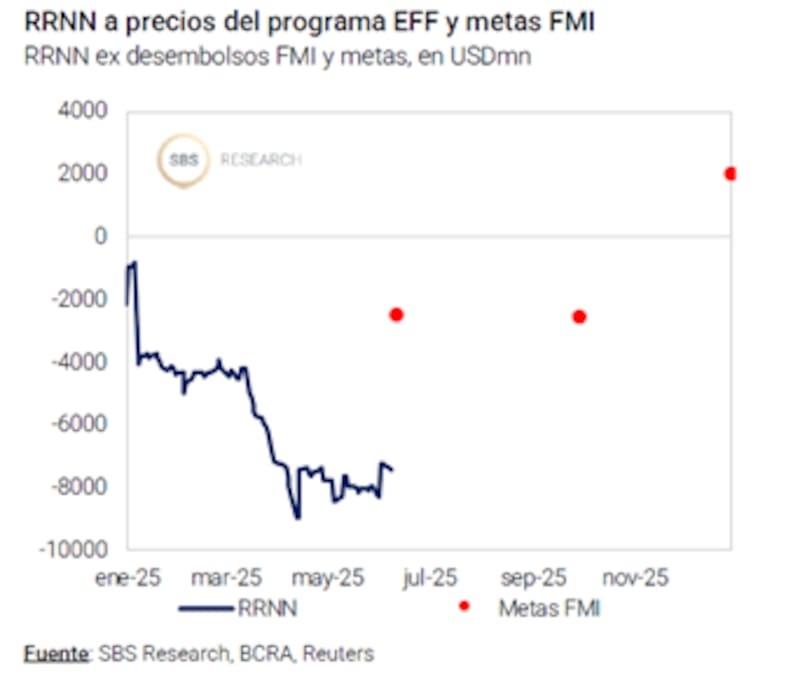 "Parte de esos fondos (u$s 500 millones) computan como reservas netas para la meta con el FMI. Esta meta aún luce lejana. Las Reservas netas se ubican en torno a los u$s 7500 millones negativos, cuando el acuerdo exigía alcanzar los u$s 2700 millones negativos al 13 de junio", detalló.