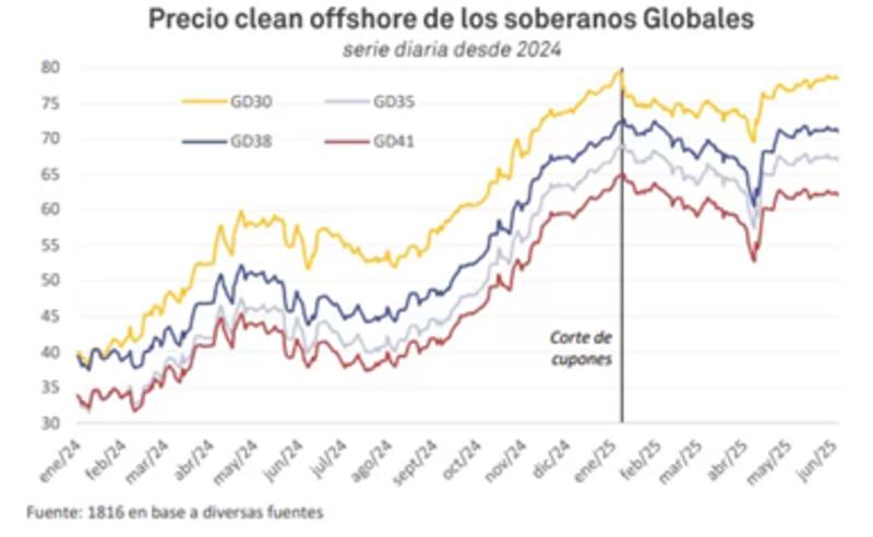 "Creemos que habrá una reinversión de los cupones por parte de inversores que reciban pago y amortizaciones el 9 de julio. Principalmente en la parte media y larga de la curva con foco en AL35, AL41 y GD46", detalló.