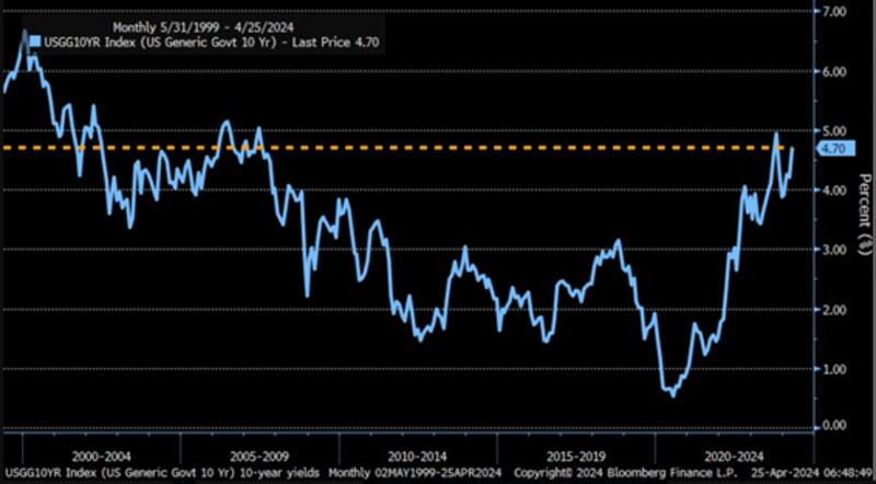 El rendimiento a 10 años se acerca a la marca clave del 5%, su mayor nivel del año.