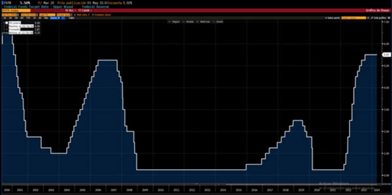 Está claramente incorporado en los precios que la Fed no moverá la tasa de interés para dejarla en el rango de 5,25% y 5,5 por ciento.