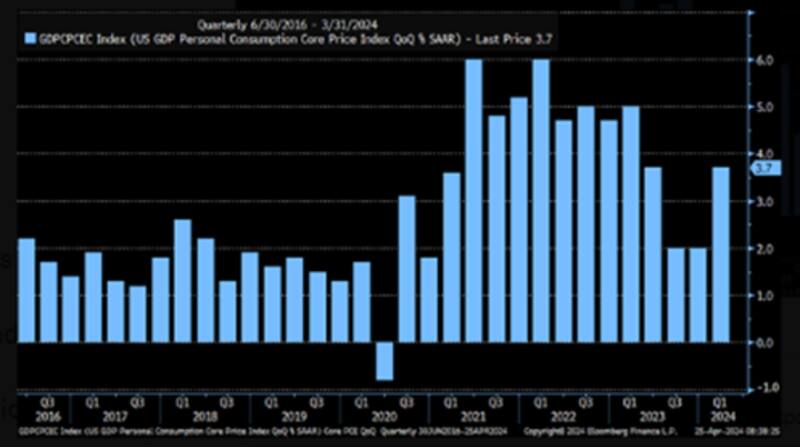 El mercado también se vio sorprendido por la inflación PCE núcleo del trimestre, que fue de 3,7%, por encima del 3,4% anualizada esperado por el consenso.