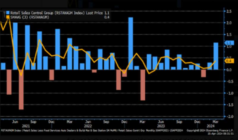 Las ventas minoristas en EEUU fueron por encima de lo esperado, creciendo 0,7% cuando el mercado esperaba 0,4%, mientras que las ventas minoristas core en marzo resultaron 1,1%, por encima del 0,5% esperado.