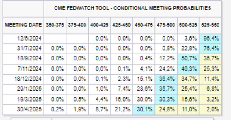 El mercado asigna una elevada probabilidad de que la Fed mantendrá sin cambios la tasa en junio y también en julio, para recién iniciar el recorte de tasas en septiembre.