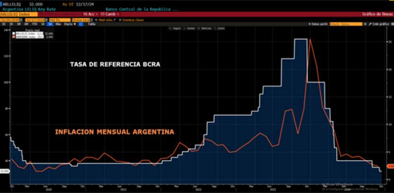 Dicha baja de tasas acompañaría una caída aún más profunda en los niveles de inflación mensual seguidos de una baja del crawling peg.