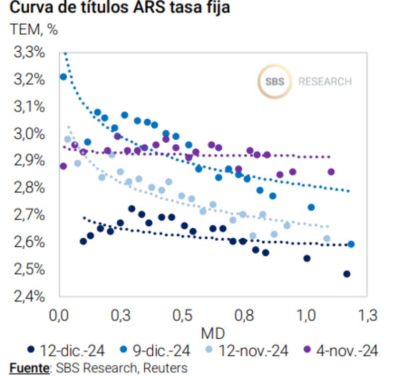 "Mirando a 2025, y tras la fuerte caída en la inflación de 2024, es posible que el BCRA recorte tasas pensando en reducir la nominalidad y los pagos del Tesoro por intereses de LEFIs. Para aprovechar un contexto de menores tasas, los perfiles más optimistas pueden apostar por el tramo largo de tasa fija", remarcó Franco.